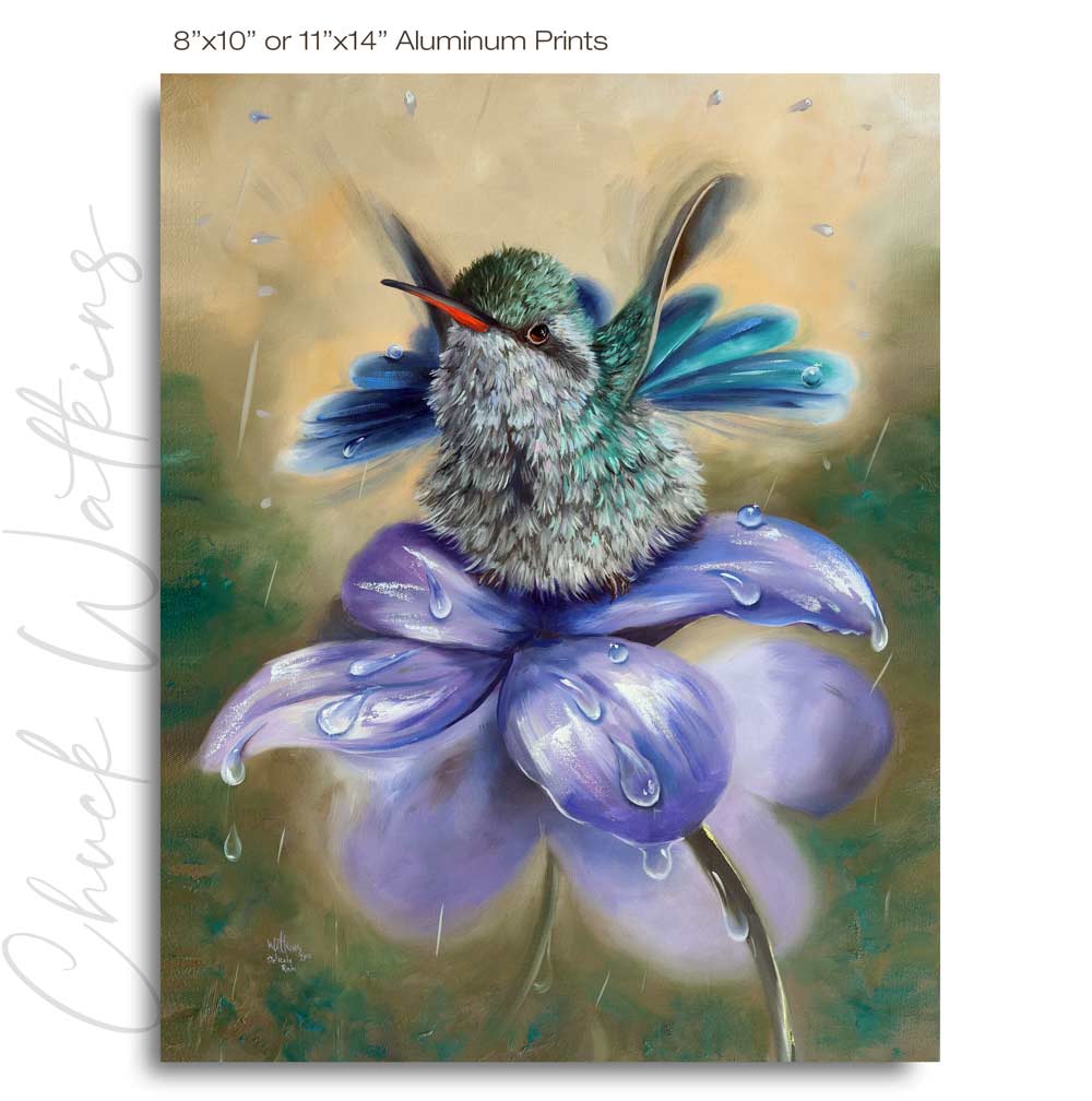 Experience the whimsical charm of a female broad-billed hummingbird dancing on a vibrant flower! This playful artwork captures her exuberant spirit as she bounces with unbridled enthusiasm among the blooms. Bursting with personality and joy, this piece brings a touch of nature's lighthearted magic into your home. A fun celebration of these tiny dancers and their infectious zest for life!