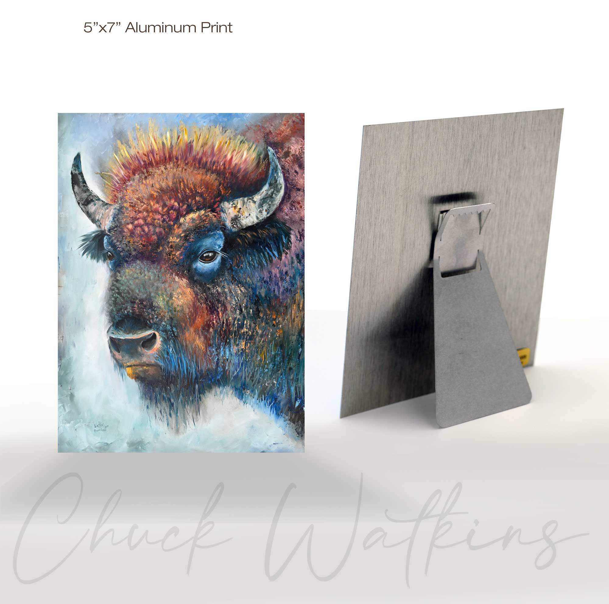 For the 5"x7" aluminum prints, they can sit or hang with the aluminum laser-cut easel back.