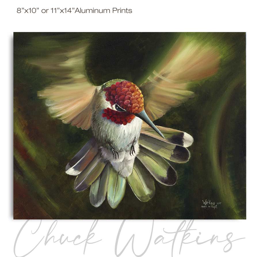 Witness the breathtaking blur of motion as a vibrant male hummingbird hovers mid-flight, wings beating in a mesmerizing flutter! This artwork captures the incredible speed and agility of these tiny aerial dancers, with dynamic wing movement that brings the scene to life. Perfect for anyone captivated by nature's speedsters, this piece celebrates the sheer joy and wonder of watching these jeweled creatures in action. A playful tribute to one of nature's most impressive performers!