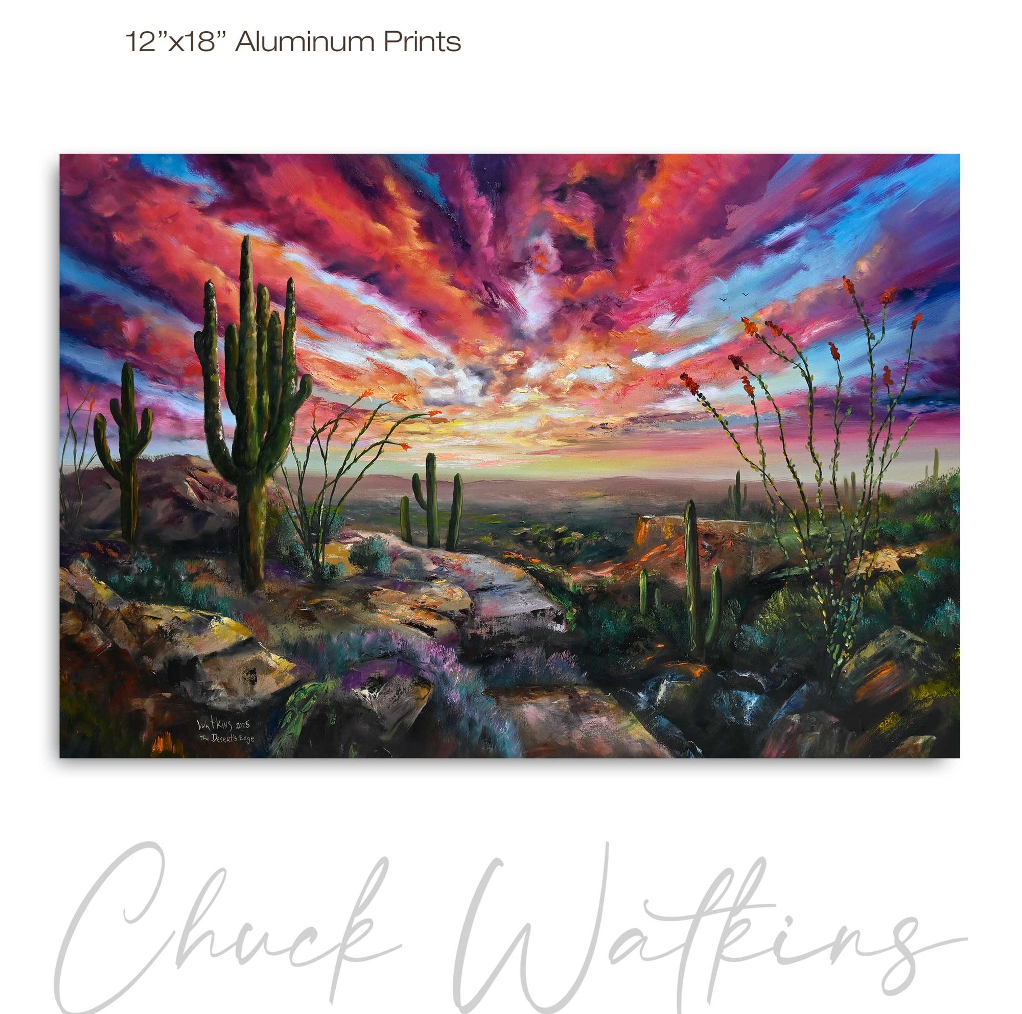 The aluminum prints are produced with a glossy finish that is vivid in color and raised an inch off the wall for a modern look. They come ready to hang, requiring no additional matting or framing.